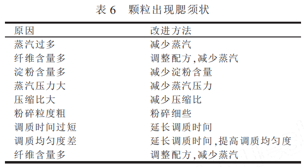 根據(jù)美國大豆協(xié)會的研究表明,在顆粒質(zhì)量的影響因素中配方占40%,粉碎粒度占20%,調(diào)質(zhì)效果占20%,制粒過程控制占15%,冷卻條件占5%。